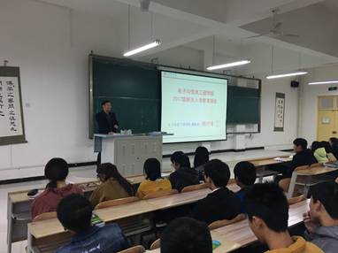 11月21日下午,电信学院副院长陈守满教授在1201教室,为2017级新生进行学籍管理入学教育。