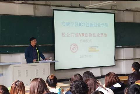 10月31日下午,电信学院举行“校企共建VR创新基地启动仪式”, 2015级学生参加了启动仪式。仪式由副院长陈守满主持。