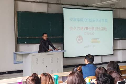 随后尚观科技的老师讲解了电信学院所学专业技能的相关社会应用,并且阐述了有关校企共建VR创新基地的合作内容,以及尚观教育培训机构以创新改变生活、高新就业、技术支撑未来的观念。