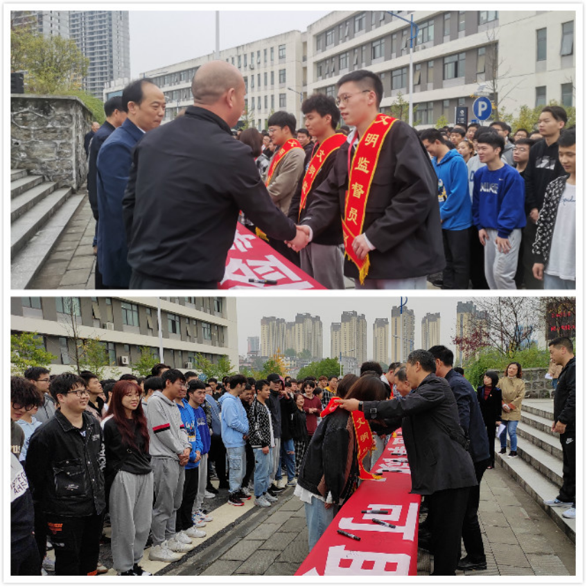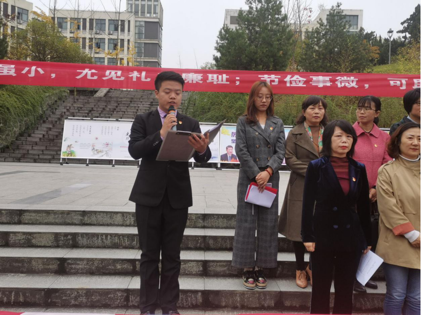 学生代表2017级计算机科学与技术专业桂军虎同学宣读了电信学院关于“厉行节约 反对浪费”的倡议书,并带领全体师生进行了宣誓!号召同学们以知为行,传承美德,争做勤俭用餐的践行者;从己做起,拒绝浪费,争做节水节电的示范者;推己及人,相互提醒,争做节能为荣的推动者。