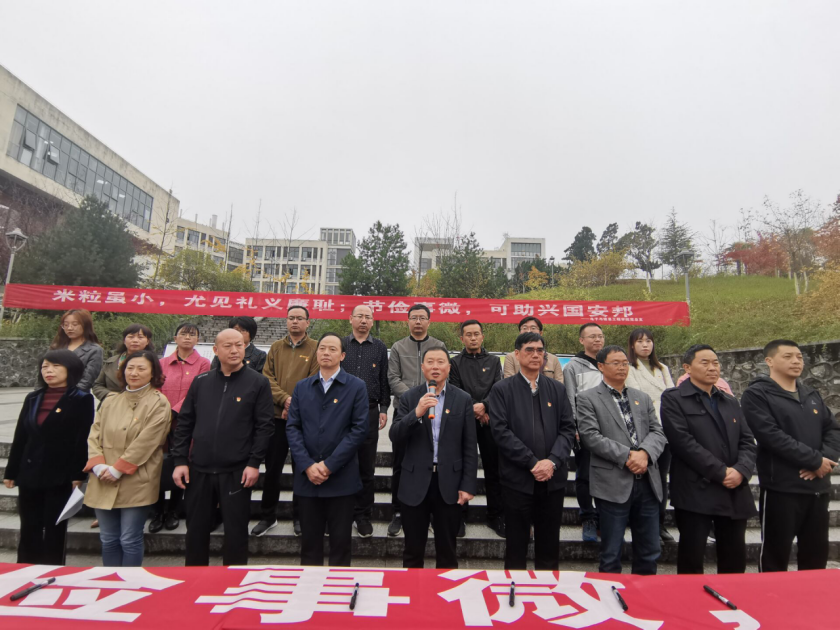 胡波在讲话中指出,习近平总书记一直高度重视粮食安全和提倡“厉行节约、反对浪费”的社会风尚,多次强调要制止餐饮浪费行为。2020年8月11日对制止餐饮浪费行为又作出重要指示,电信学院认真贯彻落实习近平总书记关于粮食安全、制止餐饮浪费行为的重要指示精神,率先在全校开展“厉行节约 反对浪费”主题教育活动,通过党建示范引领、搭建有效载体、专业实践锻炼、党团员作用等“党建+X”工作模式,大力弘扬中华民族勤俭节约的传统美德,推动节约光荣、浪费可耻理念深入广大青年心中,让厉行节约、反对浪费成为全校师生的思想共识和自觉行动。同时胡波向广大师生发起倡议,希望广大师生从自己做起,从小事做起,从每日三餐做起,节约每一滴水,每一度电,每一粒米,用小餐桌推动大文明,让勤俭节约的好习惯在学校蔚然成风,为文明校园建设做出自己应有的贡献。