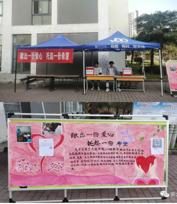 我院2020级数字媒体技术专业段银同学,其父亲于2021年3月8日被诊断出乙肝肝硬化失代偿期、肝功能衰竭,急需一笔巨额手术费进行肝移植。母亲在家照顾少年时因意外事故造成瘫痪的兄长,全家失去了经济来源。电信学院团总支得知后立即安排团总支学生会在全院发起倡议,号召广大师生为该同志捐款献爱心,帮助她的家庭渡过难关。