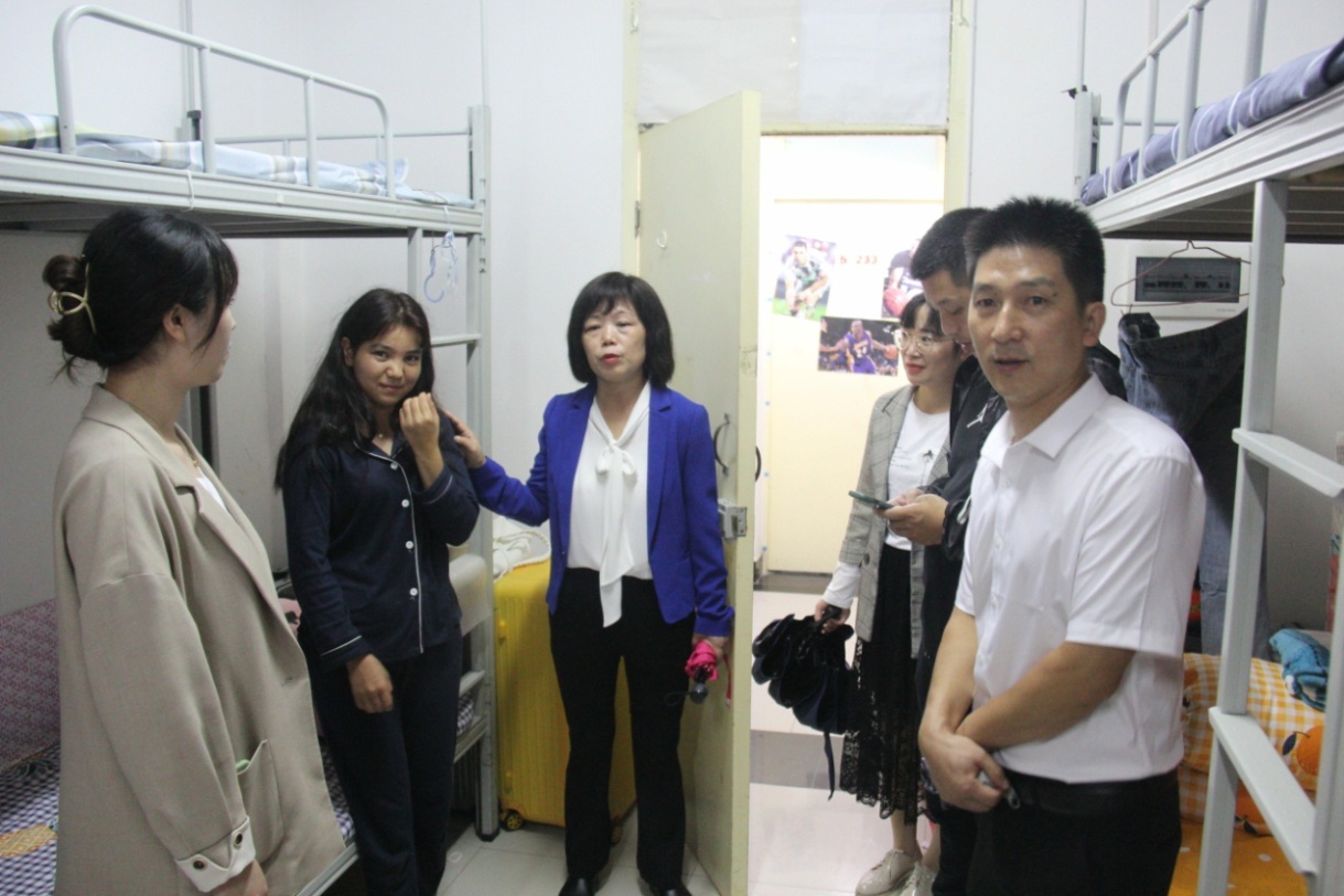 电信学院2021级计算机科学与技术专升本迎来了一位特殊的学生,新疆喀什籍学生穆耶赛尔·麦麦提伊敏,于咏梅一行专门走访了该同学所在宿舍,了解该同学来校后的生活、学习、特长等情况,希望宿舍成员思想上铸牢中华民族共同体认识,相互关爱,和睦相处,对穆耶赛尔·麦麦提伊敏同学多关心,积极营造健康、文明、和谐、有序的宿舍氛围。