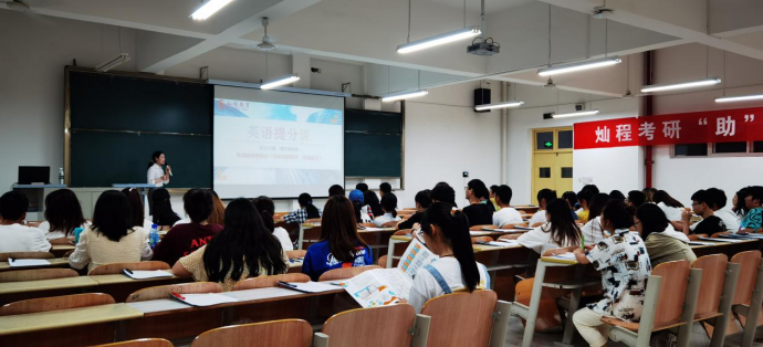9月10日,为助力2023届同学考研,欧美日韩国产在线学工办牵头,特邀灿程考研机构开展英语公开课,帮助考研同学了解英语高分技巧,学习阅读和写作的方法。本次参加公开课的同学共计70余人。