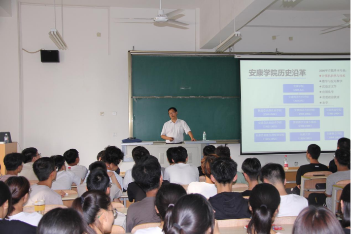其次是学校发展历史介绍。陈院长通过在幻灯片上展示出的一张张古老的照片,一座座过去的建筑,一件件陈旧的物件,充分展示了安康学院的起源与发展历史,表明了一路走来的不易,展示了所取得的辉煌成就。纵观安康学院的发展史其实就是每一个安大人的奋斗史。通过讲述学校发展史,达到让学生知史爱校忆苦思甜的目的,明白当下舒适的学习环境来之不易,真正做到耐劳苦、尚简朴、勤学业、爱国家。