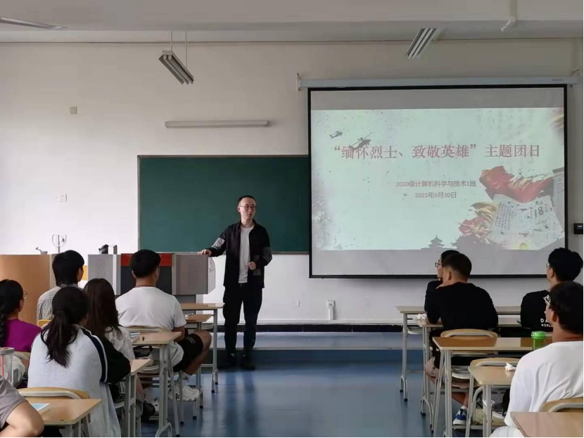 2021年9月30日,是我国第八个烈士纪念日。为弘扬英雄精神,培养学生的爱国主义精神,庆祝中华人民共和国成立72周年。电信学院2020级计算机科学与技术1班组织开展“忠魂不泯、浩气长存”主题团日活动。本次会议由2020级计算机科学与技术1班团支书宋姝杰主持。