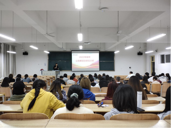 10月16日,为助力2018级同学参加2022年国家公务员考试,欧美日韩国产在线学工办牵头,特邀中公教育开展公务员考试公开课,帮助考公同学了解国家公务员考试情况,掌握考试内容,学习考试技巧。本次参加公开课的同学共计90余人。