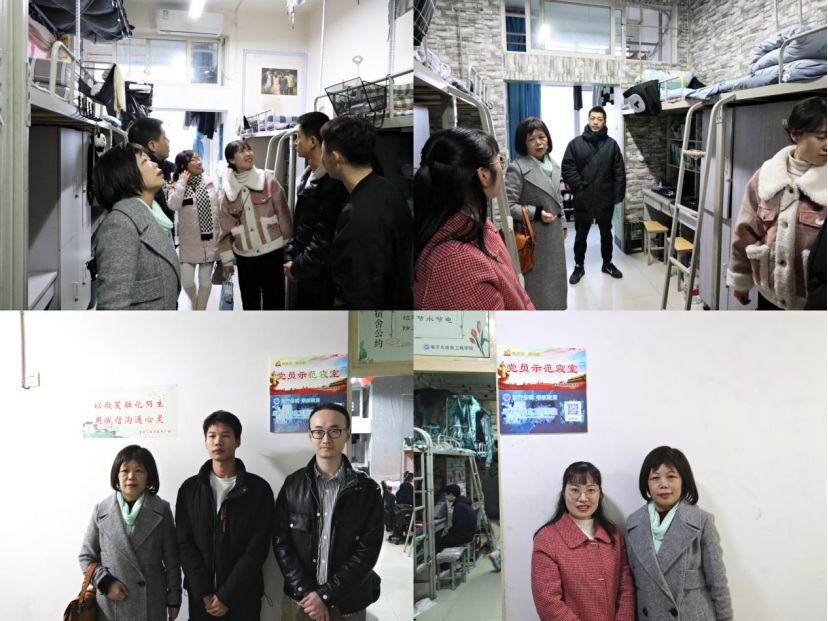 12月8日,电信学院党总支书记于咏梅与全体学工团队成员组成评委小组对宿舍整体情况进行评价与指导