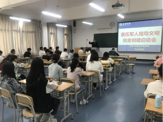 为进一步加强文明宿舍建设,充分发挥退役大学生士兵在宿舍中的先锋模范作用,带动电信学院学生营造整洁、文明的宿舍氛围,2022年4月13日电信学院在1321教室召开“退役大学生士兵指导文明宿舍创建”启动会。电信学院学工办主任石纭昊、辅导员成英丽、程晓梅、李章雨、张宇航、吕以宁参与启动会,会议由学工办主任石纭昊主持。