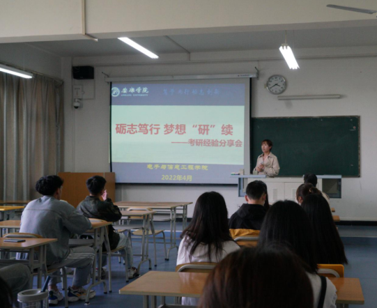 电信学院数字媒体专业的学生专业技术能力强,通过考研能够为自身提供更多的发展机会。本次考研经验分享会既是总结会也是动员会,站在前人的肩膀上,同学们必将走的更远。电信学院将继续为备考学生搭建经验分享平台,提供专业性指导,使学生进一步明确了考研方向,坚定了学生的考研信心,在学院内形成砺志笃学的优良学风。