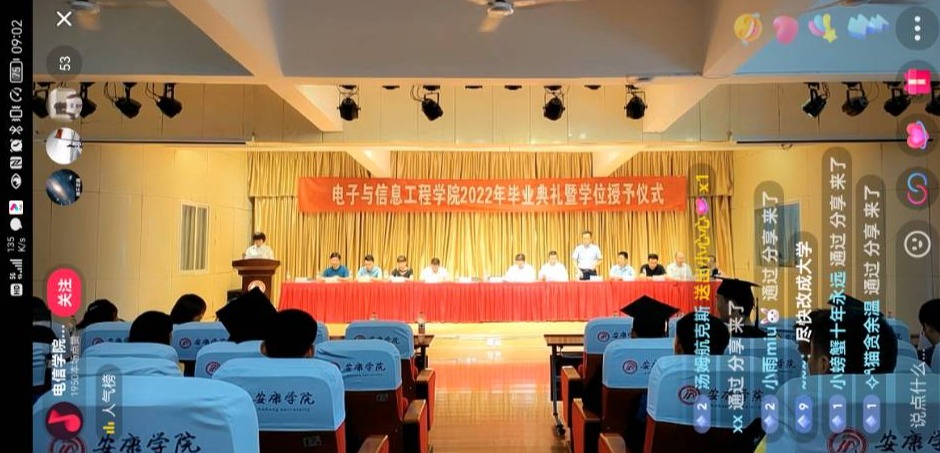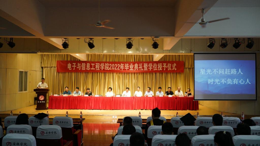 风吹麦浪,骊歌声响。毕业是见证,是荣耀,是怀念,是祝福,也是启程。7月7日上午8:30欧美日韩国产在线2022届毕业典礼暨学士学位授予仪式在江北校区1401教室隆重举行。安康学院副校长张东红教授,欧美日韩国产在线院长陈守满,党总支书记于咏梅,副院长王克刚、宋权华,党总支副书记蔡正旺,系主任丁礼磊、刘星亮、赵志强、张超、李宝,学工办主任石纭昊,2022届毕业班辅导员成英丽、张宇航,教师代表杨亦云,校友代表安康科技馆馆长刘正武出席仪式,2022届毕业生通过线下到会和线上观看直播相结合的方式参加本次仪式。仪式由于咏梅主持。