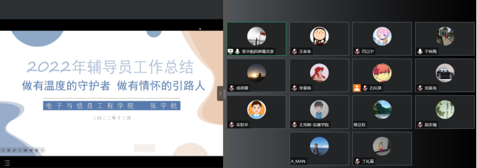 电信学院共5名辅导员参加本次工作考核,汇报围绕学生工作、专项工作、工作成效、亮点展示、问题不足、改进措施及下一步工作计划展开。