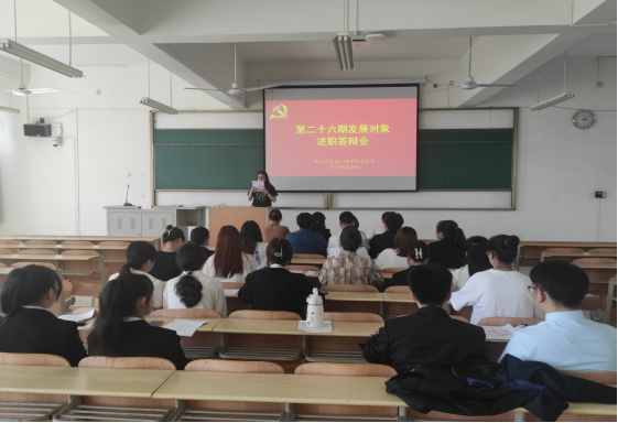 为进一步深入学习贯彻党的二十大精神,统一思想,切实增强党支部的组织力、凝聚力和战斗力,提升党员发展质量,结合党员发展工作需要,5月30日下午电信学院学生第一、第二党支部在江北校区1号教学楼1305教室开展了2023年上半年发展对象述职答辩会,电信学院党总支组织委员成英丽,学生第一党支部书记吕以宁组织(纪检)委员张宇航学生第二党支部书记李章雨学生第一党支部党员吴皓阳、徐冲,学生第二党支部党员张炬、勾新新、乔一轩以及第26期全体发展对象参加答辩会。