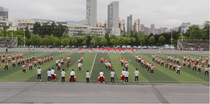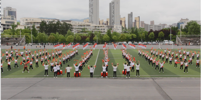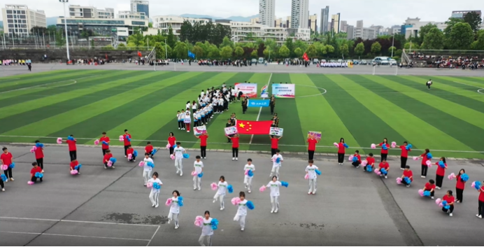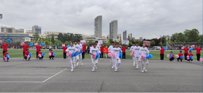 24日运动会开幕式。电信学院代表队入场,每个运动员朝气蓬勃,展现电信学院学子意气风发,奋发有为的精神面貌;电信学院腰鼓社表演团体操,参演学生们动作刚劲饱满,展现中华民族自强不息、不屈不挠、勇往直前的精神。