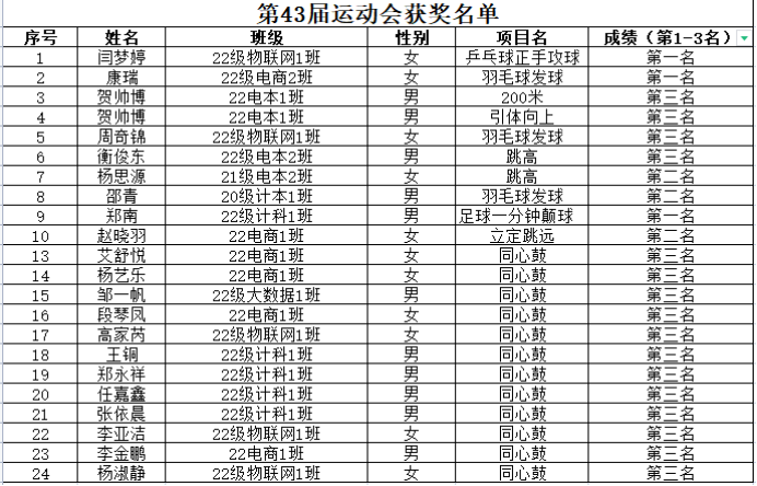 文明其精神,野蛮其体魄。在本届体育运动中,电信学院运动员们坚持“团结拼搏、追求卓越”,积极活跃校园文化氛围,充分展示新时代电信学子敢于拼搏、奋发有为的精神面貌,引导和激励全院同学敢于拼搏、积极进取、凝心聚力。在提高学生身体素质、加强同学间交流合作、增进彼此友谊的同时,也帮助广大电信学子获得了精神文明和运动成绩的双丰收。