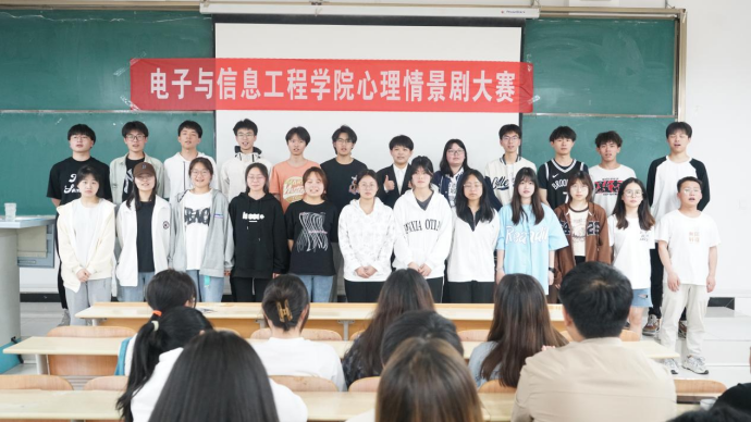 为丰富我院大学生校园文化生活,让心理健康教育更加贴近生活、贴近学生,电信学院于4月12日在1208教室开展了以“‘剧’焦心灵,筑梦未来”为主题的心理健康情景剧比赛。本次活动欧美日韩国产在线团总支各部门部长、学生会分会主席团成员杨琪和学生会纪检部全体成员为本次比赛的评委,团总支和学生会分会同学们参加表演。