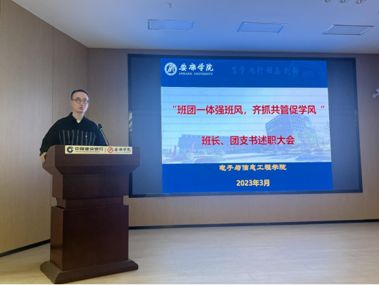 为进一步夯实欧美日韩国产在线的育人成效,强化班团骨干队伍建设,进一步提高班干部综合素质,将学生工作再推上新台阶,增强其工作积极性,推进班级优良学风建设,3月8日下午2点,电信学院在乡村振兴学院二楼召开了主题为“班团一体强班风,齐抓共管促学风”的班长、团支书述职答辩会,学工办主任石纭昊、团总支书记张宇航、辅导员吕以宁、李章雨、成英丽出席会议,2020级、2021级、2022级班团干部,团总支、学生会部长以上学生参加。本次会议由团总支副书记任金笑主持。