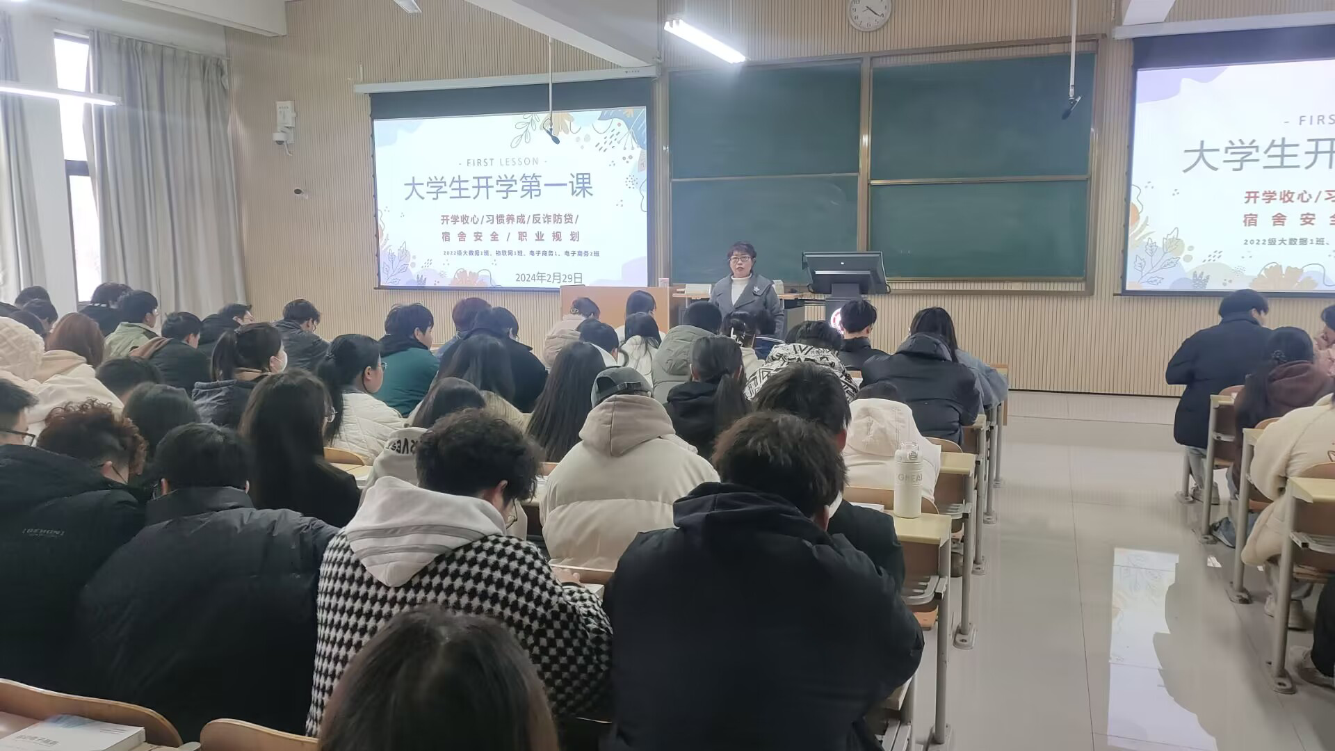新学期伊始,为扎实做好我院2024年春季学期学生返校后的安全教育工作,帮助同学们明确新学期的学习方向和目标,培育更加密切良好的师生关系,营造稳定和谐的校园环境,近日欧美日韩国产在线召开“开学第一课”主题班会。会议由各班辅导员主持,学院全体学生参加此次班会。