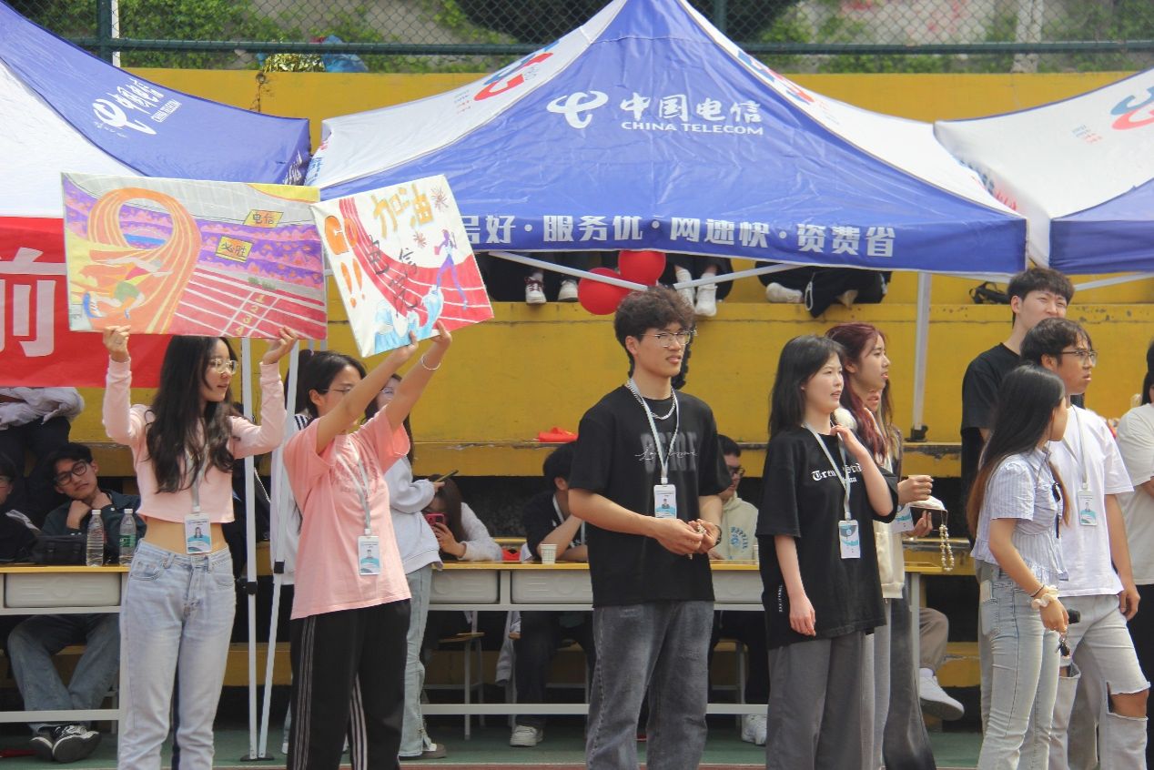 此外还有场外观众的加油助威,他们准备了大鼓、扬声器、加油牌等道具,到场的观众们奋力摇动加油牌,为运动健儿加油呐喊,争做运动会最佳气氛组!极大地鼓舞了参加校运动会的师生的士气。