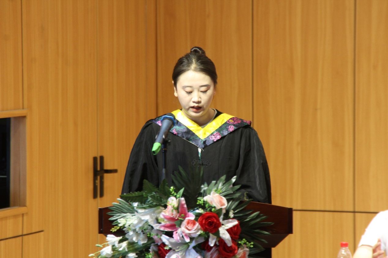 大家好!我是来自物联网工程2020级1班的任柯伊,站在这里,我感到无比的荣幸和自豪。首先,请允许我代表全体毕业生向一直以来辛勤付出的老师们表示最崇高的敬意和最诚挚的感谢!