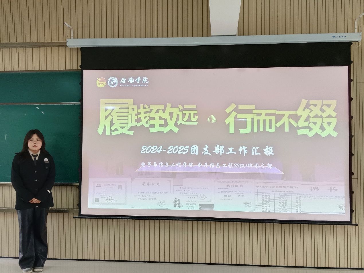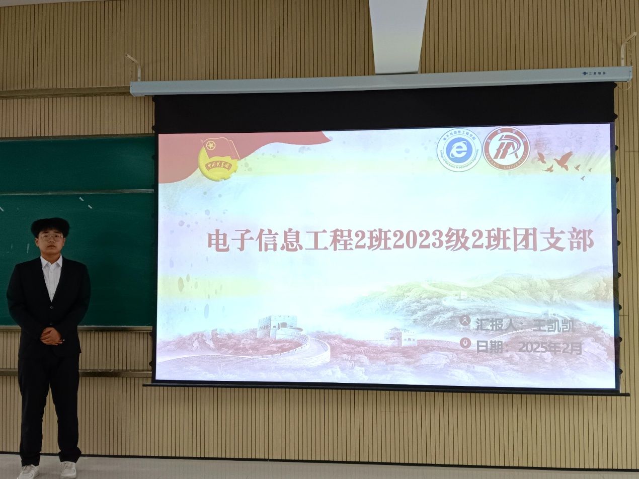 最后,党总支书记于咏梅做总结讲话并为与会学生上了一堂微团课。她对各班班长与团支书在日常工作中的默默耕耘、无私奉献给予了高度赞誉,充分肯定了他们为班级管理和学院建设所付出的辛勤努力。她强调了推进班团一体化建设的关键意义,鼓励同学们积极探索,努力构建科学合理的层级化与高效扁平的管理模式相结合的班级团支部架构,打破壁垒,促进班级与团支部之间的协同合作,形成全员育人、全过程育人、全方位育人的良好局面,共同助力同学们的成长成才。她向同学们全面且深入地阐释了学院的“五色”育人模式,并就2025年如何推进“五色”育人工作提出了五点希望和要求:一是以“党旗红”为主色,红“芯”领航。传承红色精神,让红色基因在青年学子心中生根发芽,让红色学习时刻“在线”,红色教育线上线下同频共振。以我“讲”你“学”、“微视界”党建品牌创建为抓手,充分运用AI技术赋能思想政治教育工作,推进网络思想政治教育;二是以“科技蓝”为本色,“电”亮未来。电信学院充分运用AI技术,凝聚高质量发展共识,赋能学院各项工作高质量发展。探索电子信息领域的深邃与广阔,“电”亮同学们通往未来的科技之路,助力学生成长成才;三是以“榜样金”色为特色,思政育人。通过先进人物评选、优秀成果展示、感人事迹宣传,以先进为榜样,用成绩作引导,使广大学生学有榜样,赶有目标。用青年榜样故事将好“大思政课”;四是以“活力橙”色为亮色,活动育人。将先进文化涵养与文明养成教育有机整合,围绕学生成长成才目标,着力培养既有文化底蕴又讲文明修养的“橙”色青年。以电信学院第二课堂成绩单制度为依据,结合学生对于第二课堂活动的实际需求,将传统文化与文明养成融入校园文化活动当中,充实学生的课余生活,提升学生综合素质;五是以“制度黄”为底色,筑牢底线。以“黄”色作为警示色,积极引导学生坚持底线思维,培养学生树立规矩意识。不断构建和完善学院党建和团建、教育教学、学生日常管理、第二课堂等制度化体系,从而充分发挥制度教化与制度规训功能,引导师生强化法纪意识。建好“‘芯’廉心”廉政文化品牌,助推学校“351”廉洁教育精品工程建设融入学院师生教育日常,引导学院全体党员干部、师生尚俭戒奢、修身正德、律己守廉。时刻提醒着全体师生要坚守道德与法律底线,筑牢思想防线。
