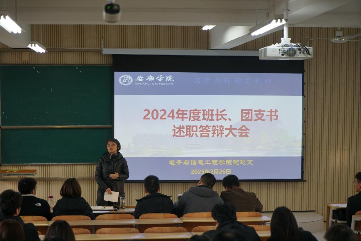 欧美日韩国产在线围绕学校“五位一体”思想政治工作大格局总体部署,全面落实大学生思想政治工作“八大工程”具体要求,强化班团干部队伍建设,推进优良班风、学风建设,助力学生成长成才,打通“十大育人”体系的最后一公里。2月26日下午2点,欧美日韩国产在线于1323 教室召开了以 “聚焦班团一体 助力学生成长” 为主题的2024年度班长、团支书述职答辩会。学院党总支书记于咏梅,党总支副书记蔡正旺,学工(就业)办主任石纭昊,团总支书记(创新创业工作办公室主任)张宇航,辅导员成英丽、翟子轩、吕以宁、贾金兵,以及 2022 级、2023 级、2024级班团干部,团总支、学生会部长等60余名学生参与会议。本次会议由团总支副书记李子涵主持。