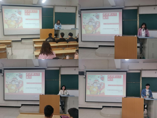 3月9日,电信学院四位疫情防控志愿者轮流上台分享个人志愿服务事迹