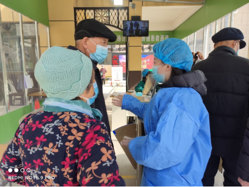 2020级电子商务1班郭文雨作为疫情防控志愿者对来院就医人员进行分流