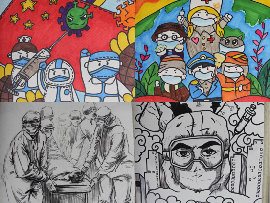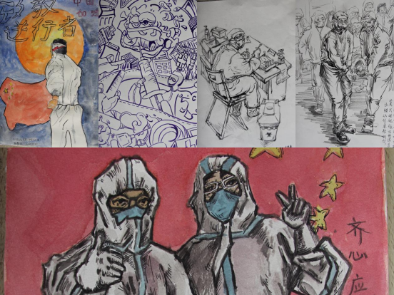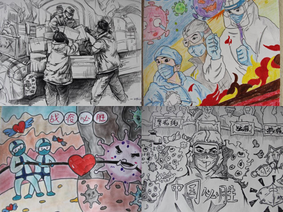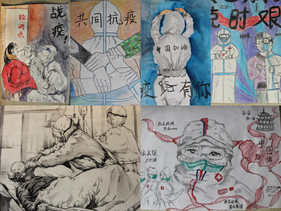 2020年初,一场突如其来的新冠肺炎疫情席卷全球。停业、停产、停工、停课,停止一切不必要的聚集性活动。转瞬之际,社会生活的许多层面进入暂停状态。抗击新冠肺炎疫情成为两年多以来中国社会经历的最为紧迫而重要的事情。为歌颂防疫志愿者及一线工作人员舍身忘我、忠诚担当的英雄主义精神,彰显全国人民万众一心、同舟共济中国精神,展现中华儿女面对疫情充满信心、敢于胜利的积极乐观精神。3月10日电信学院在全校范围内开展了弘扬抗疫精神主题美术作品征集活动。本次活动共收到作品107副,其中部分优秀作品如下: