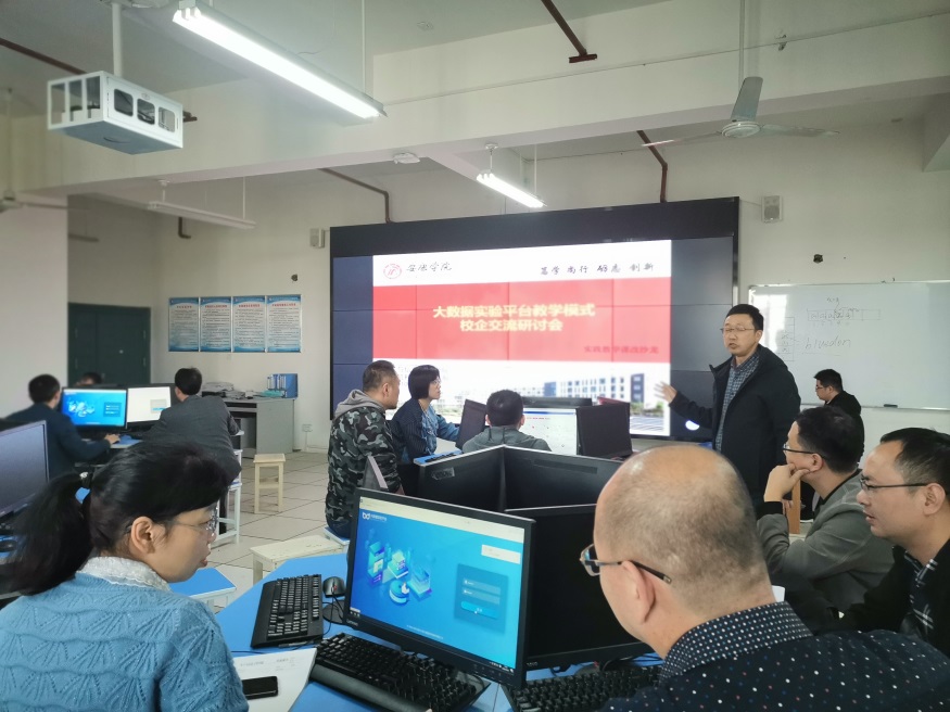 王克刚结合我院计算机专业大数据实验教学平台建设情况向参会老师作了简要说明,围绕着教师如何有效利用大数据实验平台提高相关课程实验教学效果,如何利用平台展开科学研究和进行科研项目实施提出了建议。
