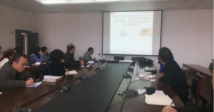 随后,海涛博士围绕自己的研究领域做了题为《Application-specific Data Mining in IoT-Secured Data Collection With Hardware-Based Ciphers for IoT-Based Heathcare》的学术报告。