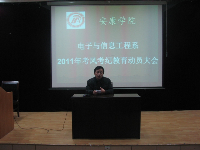 1月4日下午,电子与信息工程系在1号教学楼6楼报告厅召开了考风考纪教育动员大会。电信系领导班子成员、学生工作办公室成员、2010级全体学生参加了会议,会议由系主任钟生海主持。