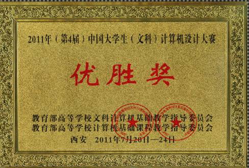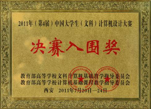 7月21日—24日,由教育部高等学校文科计算机基础教学指导委员会、教育部高等学校计算机基础课程教学指导委员会联合主办的“2011年(第4届)中国大学生(文科)计算机设计大赛”决赛在西安电子科技大学、西北大学和陕西师范大学举行。