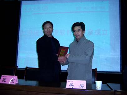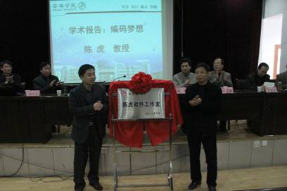 电子与信息工程系主任张东红介绍了陈虎的情况和软件工作室的工作思路。陈刚副院长向陈虎颁发了安康学院“兼职教授”聘书。杨涛书记、陈虎教授共同为“陈虎软件工作室”揭牌。