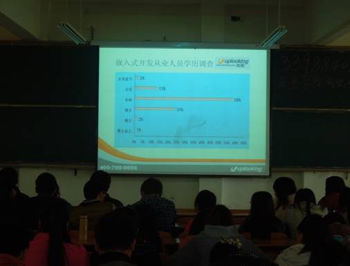 会上,尚观科技公司负责人米晓超老师向大家着重介绍了嵌入式、Linux操作系统及将要开展校企合作的“实践周”计划。同时对大学学习的知识模块、相关软件公司以及未来的工作岗位、待遇、工作模式进行了说明。