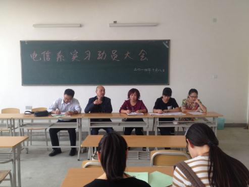 2014108下午,电子信息工程系于1321教室成功召开了电子信息工程专业毕业生实习动员会。大会由系副主任陈守满主持,系党总支书记李红兵作了重要讲话。参加会议的还有辅导员成英丽、实习带队老师余顺园、陈颖及2011级电子信息工程专业在校学生。