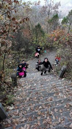 11月29日,电子与信息工程系教职工及家属齐聚赢湖镇,参加分会组织的登天柱山活动。