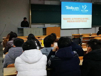 达内科技西北区总经理陈相锋宣讲了本次训练营的实战内容,并表示公司愿意为训练营提供一定的技术支持,协助电信学院组建教学混编团队,同时为本次训练营提供了壹万元的基金支持。