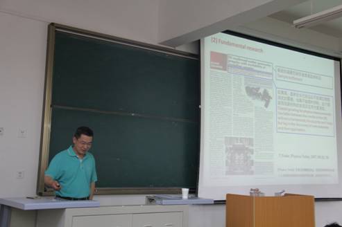 曹崇德教授从自己的研究内容开始,主要介绍了大单晶在凝聚态物理、材料科学与技术和工业领域的重要价值和相关前沿课题,详细阐述了物理在大单晶生长制备和新材料研究与开发领域所起的重要作用。同时,就学生非常关心的应用物理学专业的发展前景和考研给予了现场解答,介绍了西北工业大学的考研政策和研究生教育现状,鼓励大学生要安心学习,积极准备考研,利用所学物理知识服务于社会,实现自己的梦想。报告会内容精彩,受到师生热烈掌声。