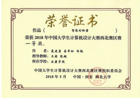安康学院学生在全国大学生计算机设计大赛西北赛区的获奖名单
