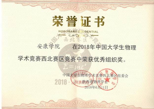 6月9日至11日,2018年中国大学生物理学术竞赛(西北赛区)在西北大学隆重举行。欧美日韩国产在线物理系代表队获得二等奖、方小兵老师被评为优秀裁判,我校被授予优秀组织奖。