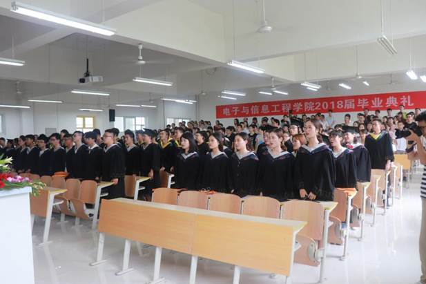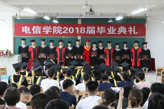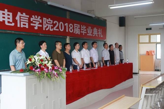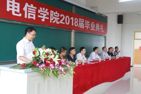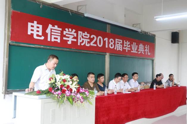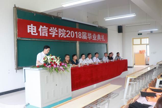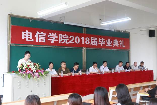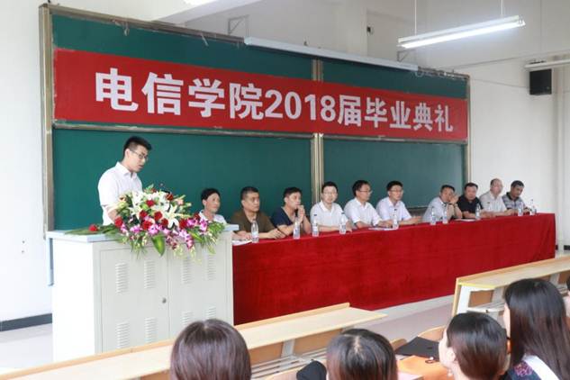 2018年7月2日下午三点,我院2018届毕业典礼在1301室隆重举行,副校长张东红,电信学院院长陈守满,副院长王庆春、王克刚,各系主任出席典礼并在主席台就坐,2018届毕业生代表近200人参加了毕业典礼。典礼由电信学院党总支书记何道利主持。