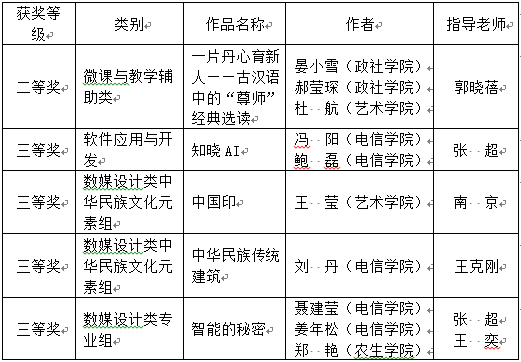 2018第11届中国大学生计算机设计大赛全国决赛日前落下帷幕,我校组队参赛共获奖5项,其中二等奖1项,三等奖4项。本届比赛共有全国500余所院校组织的万余件作品参赛。经校级初赛、省级复赛,最终选拔推荐2767件作品进入全国决赛。自2018年7月17日至8月30日,分别在铜陵学院、巢湖学院、南京农业大学、南京邮电大学、福建农林大学、东华大学、浙江工商大学、浙江音乐学院分类别举行了现场决赛。