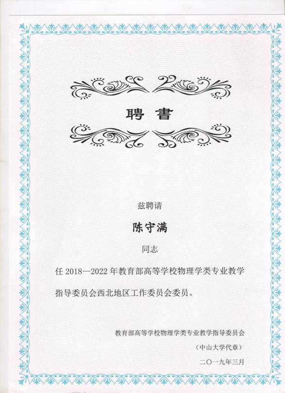 3月23日,在西安交通大学理学院仲英楼召开了2018—2022年教育部高等学校物理学类专业教学指导委员会西北地区工作委员会成立及第一次工作会议,来自西北五省高校的物理学类院系或专业负责人应邀参加会议,我院陈守满教授出席会议并被聘为西北地区工作委员会委员。