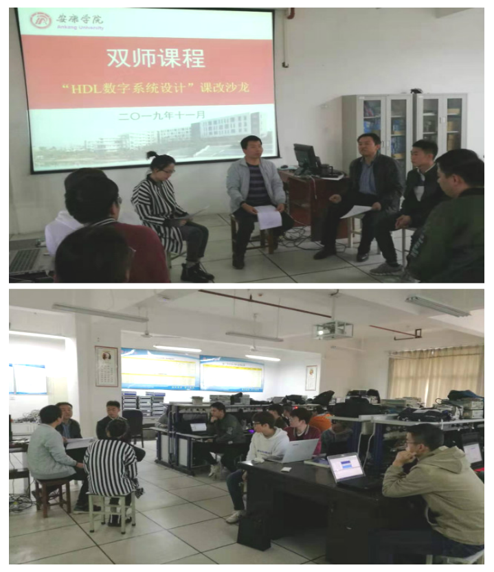 为了进一步推进电信学院产教融合、协同育人人才培养模式的构建,不断提高应用型人才培养质量。2019年11月8日,电信学院电子工程系在江北校区逸夫科技楼A401实验室,围绕学校首批立项的“双师课程”《HDL数字系统设计》建设成效,开展了一次课改沙龙活动。电信学院教学副院长王庆春、双师课程合作企业授课老师贺磊工程师、电子工程系相关教师以及电子信息工程专业2017级学生参加了本次课改沙龙活动。