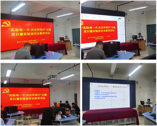 为大力提高教师安全意识隐患,共建实验室安全规范制度,保障师生生命财产安全,4月27日下午电信学院教工第一、二党支部联合在逸夫科技楼A501开展主题党日暨实验室安全教育活动。安康学院副校长张东红出席本次活动,电信学院教工第一、第二党支部全体党员以及学院非党员老师参加活动,教工第二党支部书记丁礼磊主持会议。