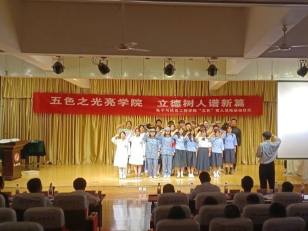 启动会上,全体与会人员观看了电信学院学生展演的情景剧《百年大业》。穿岁月峰头,伴历史云烟,中国共产主义青年团百年来风雨同舟路,团旗耀征程。一代又一代青年在党的领导下,积极投身中国革命、建设和改革的伟大事业,谱写了一曲曲壮丽的青春之歌。电信学院学生以此情景剧《百年大业》庆祝建团一百年,青春献礼二十大,并集体宣誓“五色”实践教育活动誓词。