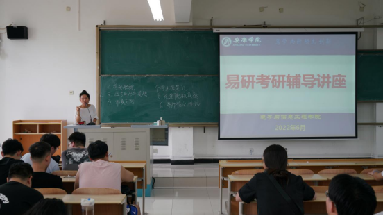 为进一步推进电信学院学生对考研深入了解,科学高效备考,6月1日下午电信学院在1304教室召开了“易研考研辅导讲座”,此次讲座由易研教育胡老师主讲,2019级考研学生参加。