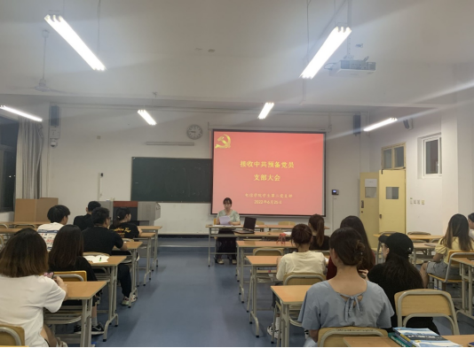 2022年6月25日,电信学院学生第二党支部在一号教学楼1319教室召开党员大会接收中共中央预备党员,讨论接收2020级数字媒体技术1班乔一轩、2020级电子信息工程1班勾新新两位同志加入中国共产党事宜。本次大会由电信学院学生第二党支部书记李章雨主持,全体在校党员同志及本期发展对象参与此次议会。