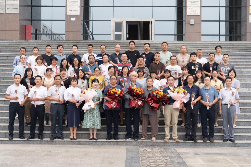 会后,所有电信学院全体教师和退休教师在逸夫科技楼前合影留念。